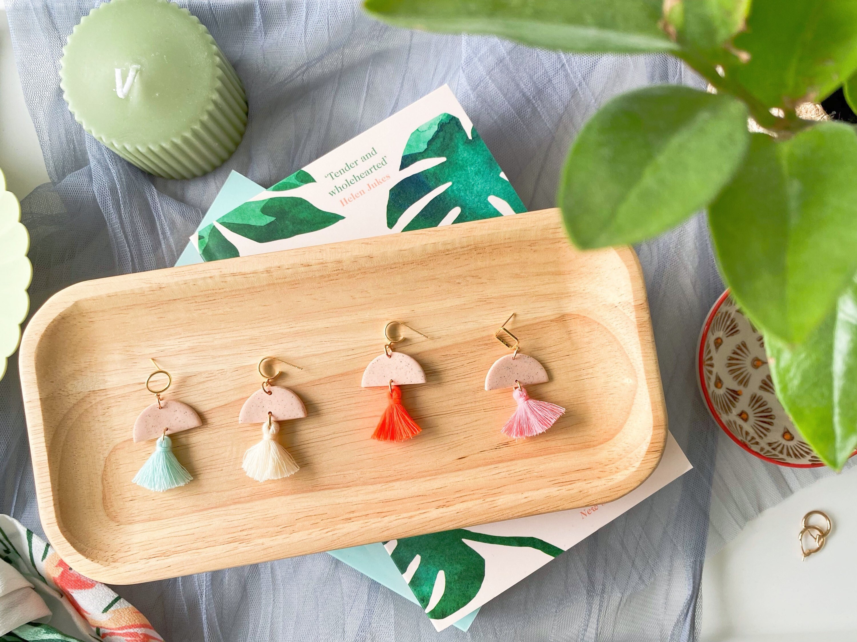 Sandstone Tassel Polymer Clay Earrings Gold Hoop Square Etsy